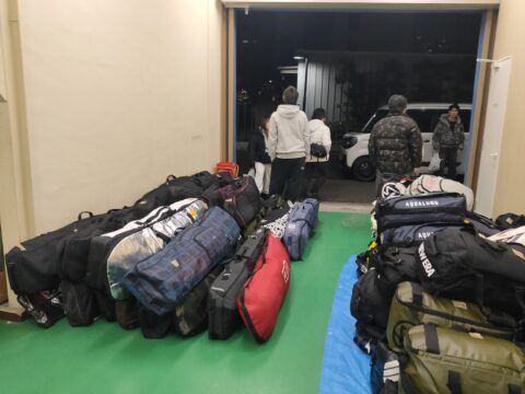 人数が多いのでスノーボードの板も荷物も山盛りです(笑)